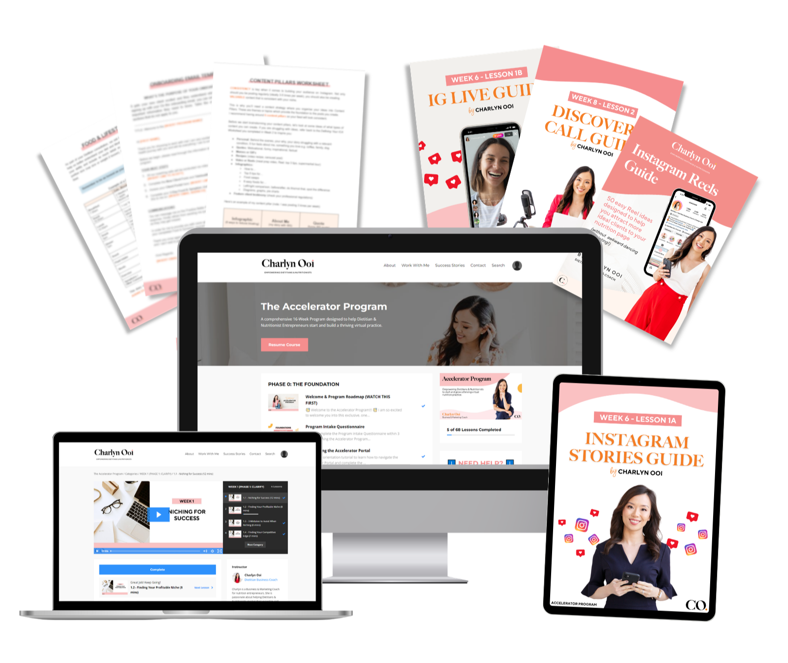 "Working with Charlyn has been the best decision. It has completely changed my business. I now attract and get to work with my ideal clients. I hit my first $5k month and just launched my first online program. Charlyn not only gave me the tools and resources but also mentored me and gave me the confidence to take the leap. I would recommend Charlyn to any Nutritionist or Dietitian ready to take the next (or first) step in their business!"